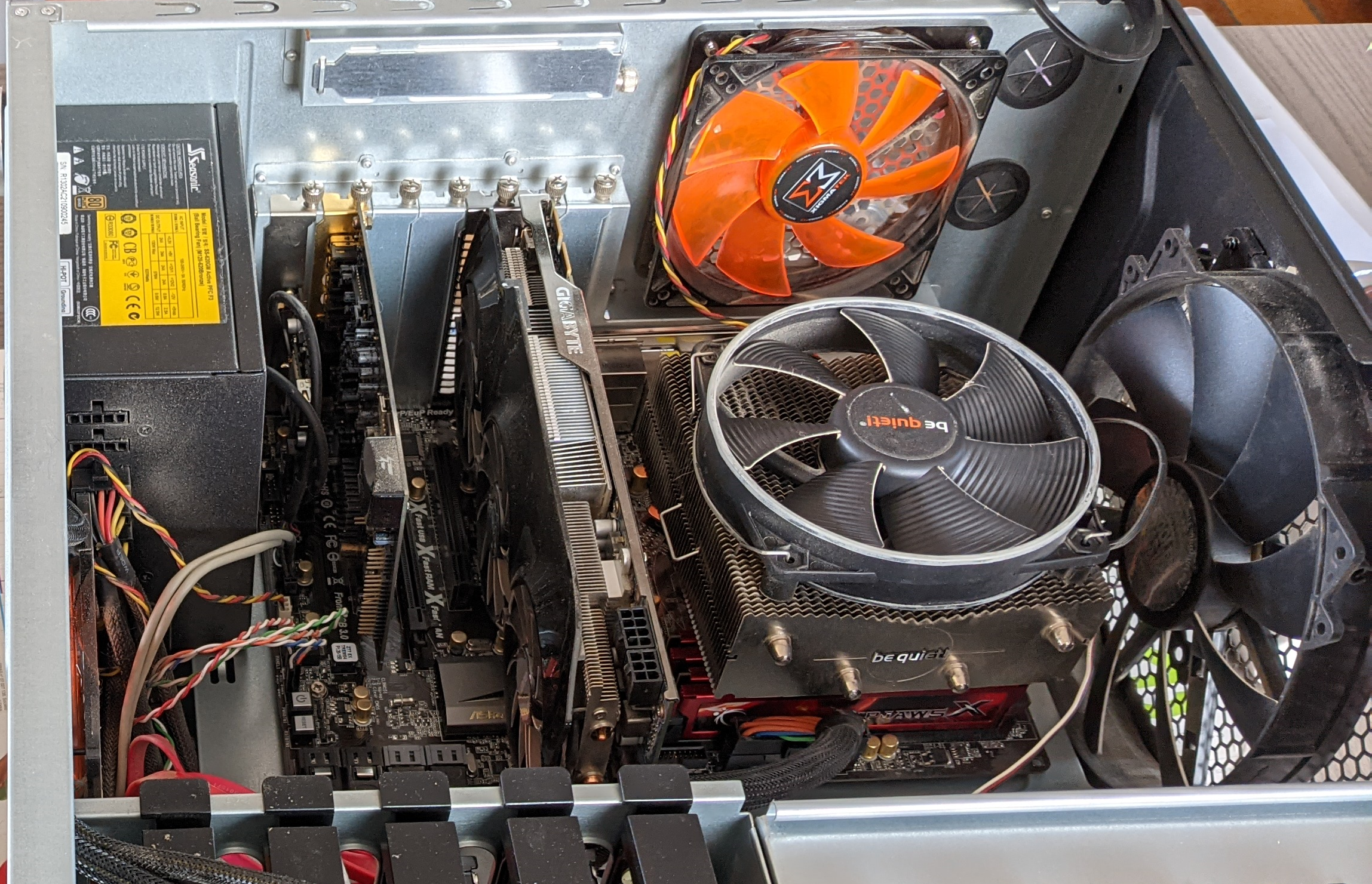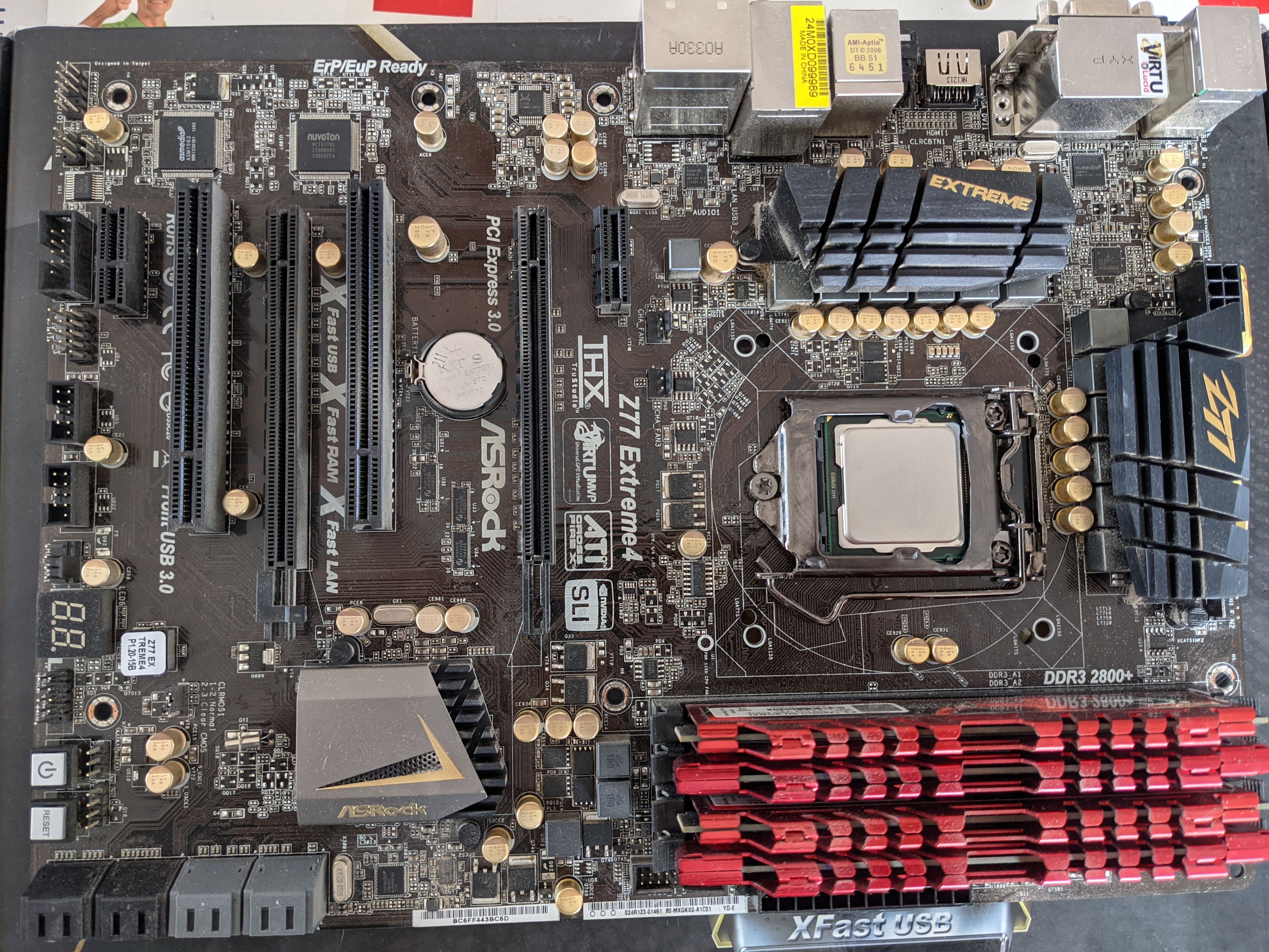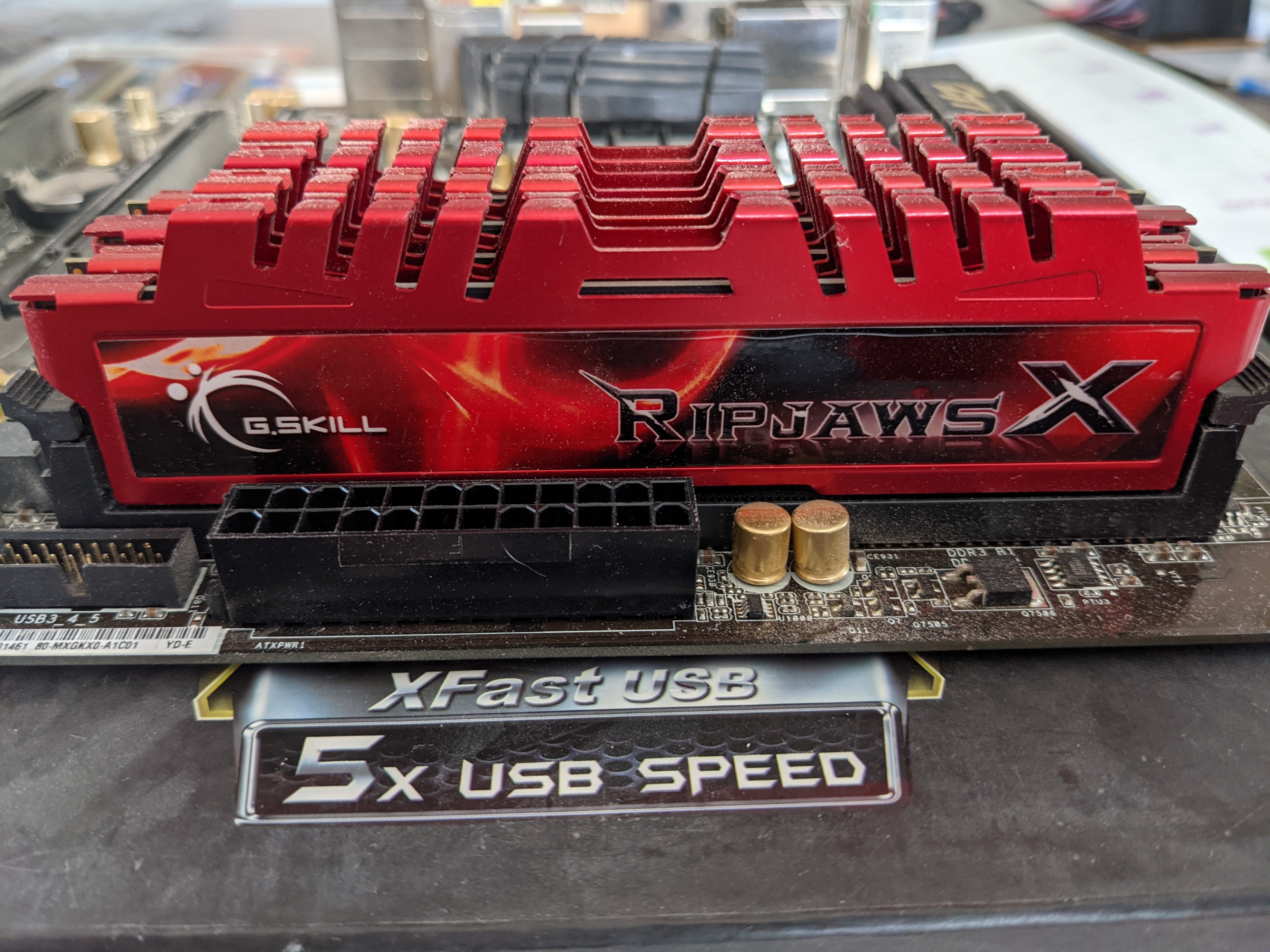 mobale Z77 extreme 4, I7 2600K, 4x4Go Gskill ripjawsX PC3-12800et un kit qui était dessus avant : Gskill 4x2 RipjawZ PC-17000.Pas faire gaffe à la poussière