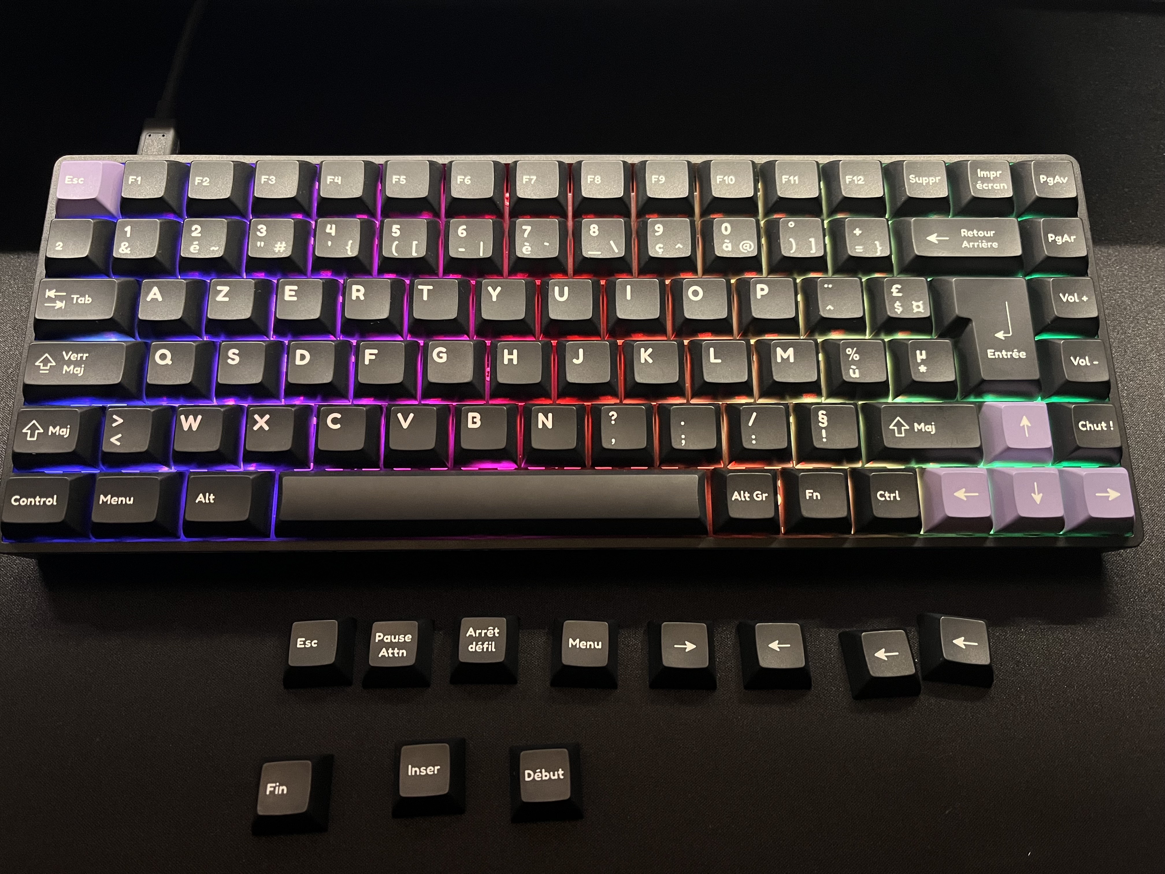 - Keyset Iso-Fr neuf (Keyset venant de chez Yuzu Keycaps). Keycaps en PBT imprimées par sublimation. Profil KAM, profil créé par Yuzu équivalent au format DSA ou XDA, toutes les keycaps sont de la même hauteur - Tray mount - Seulement Usb-C - Switchs Gateron Jaune GPro 2.0 (+12 en rab) - 2 hauteurs de pieds - 800gr - Divers outils