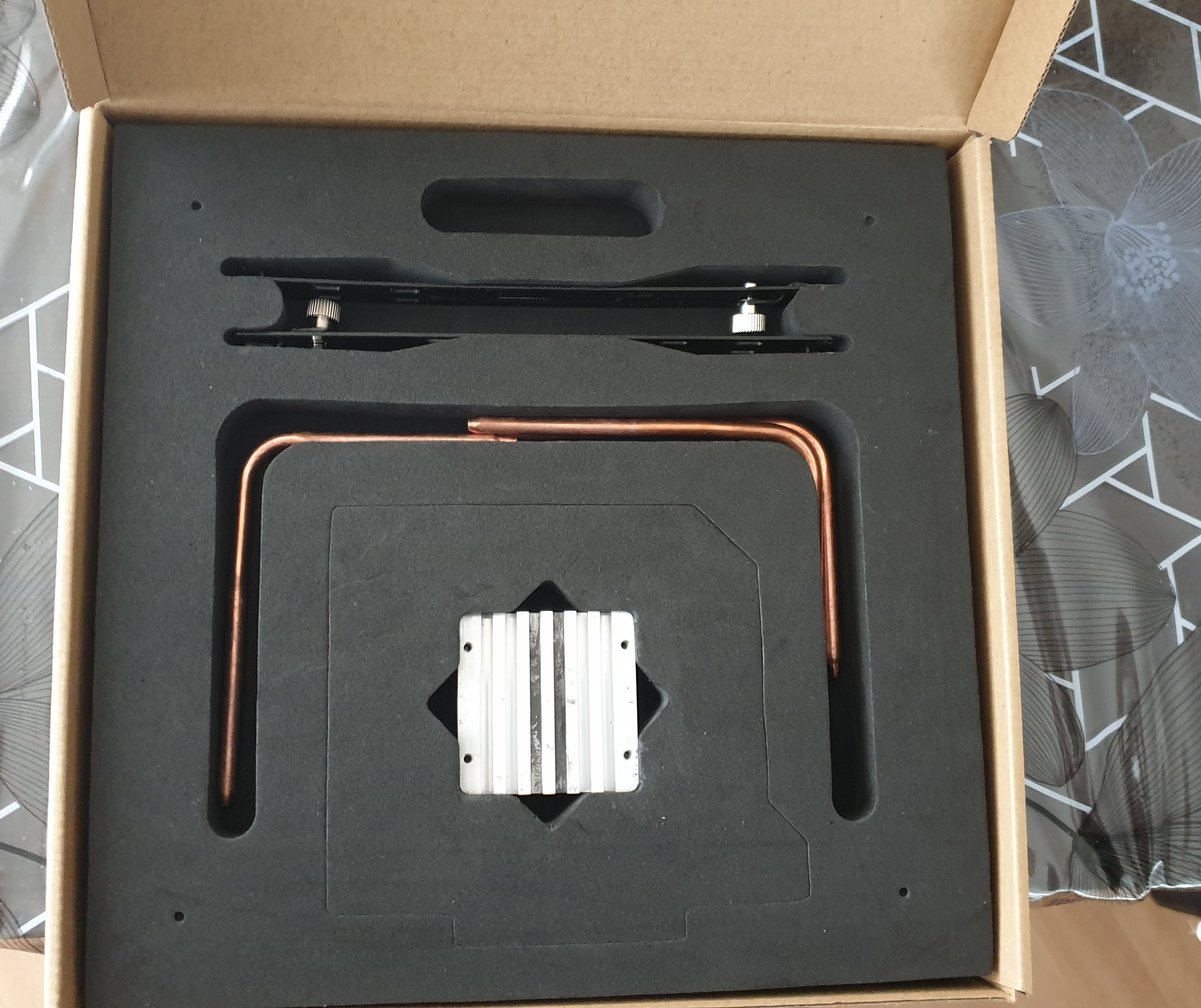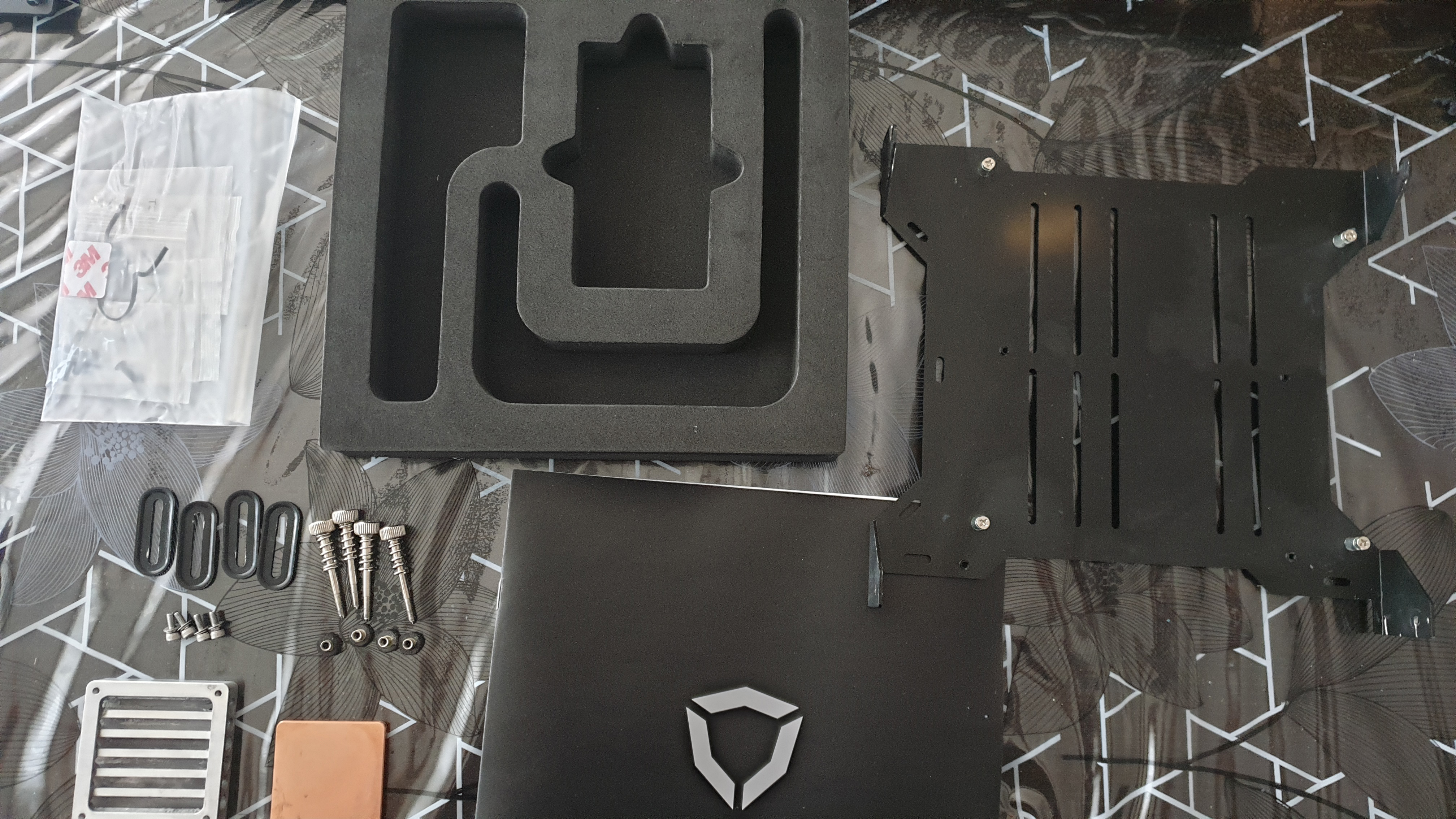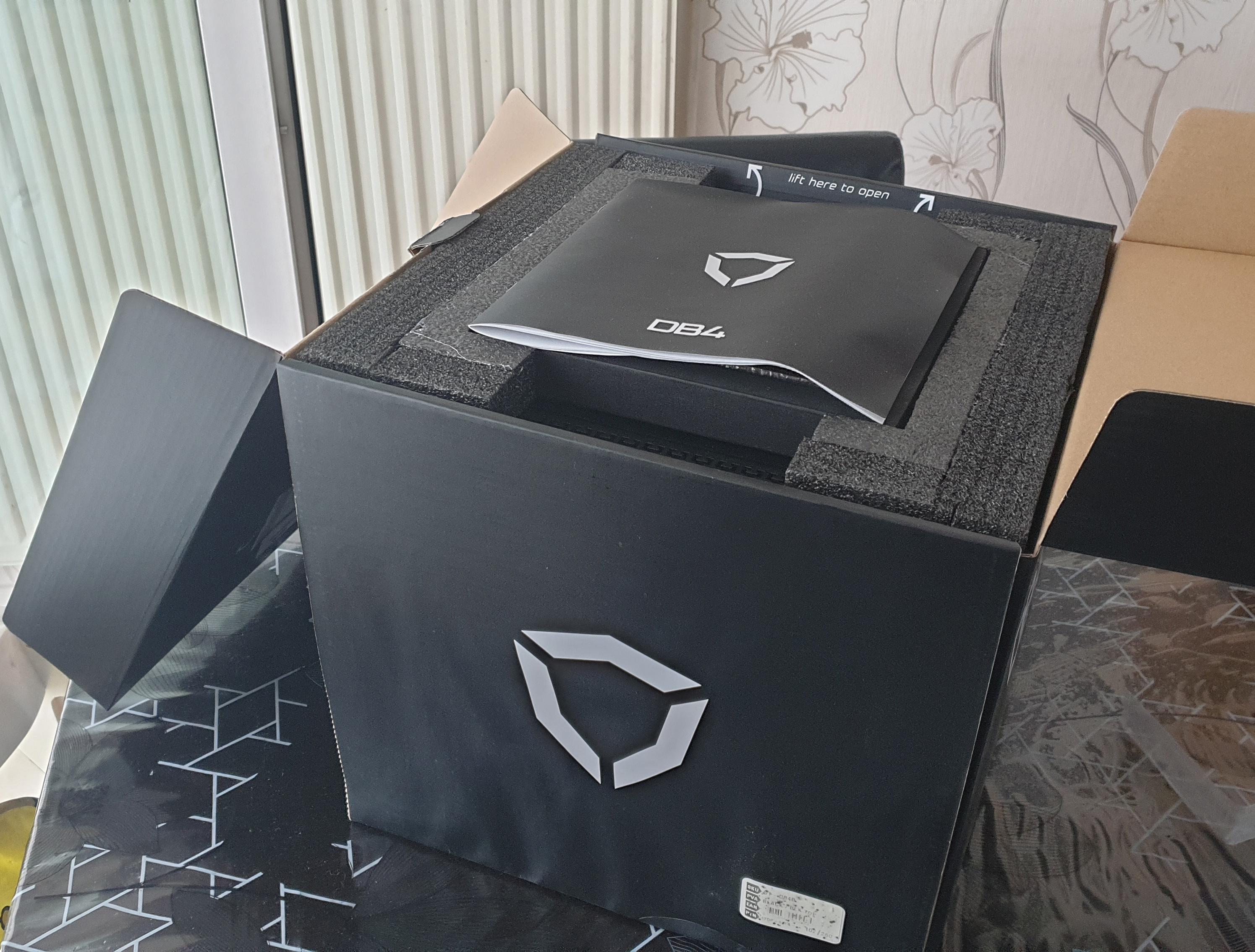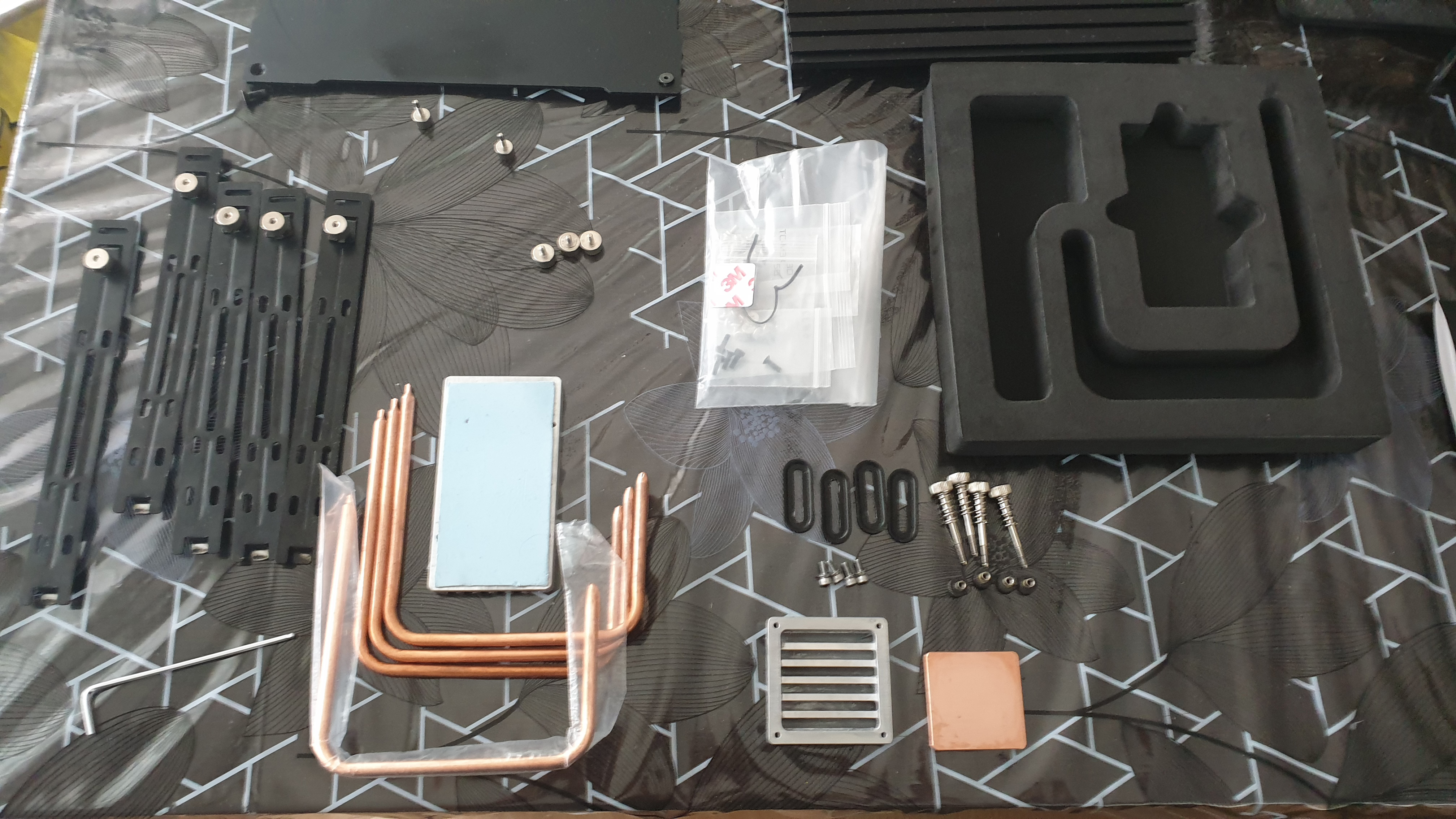 Le boitier n'a aucunes rayures. Il ne manque au bundle qu'une des petites rondelles en plastique (5eme photo) qui empêche les vis de tomber si on retourne le couvercle du boitier. Les emballages du boitier et du kit GPU étaient stockés dans mon garage souterrain où ils ont pris l'eau. Le carton interne du DB4 est un peu déformé et le carton externe est sale. L'emballage du kit LH6 est impeccable. Facture Caseking.de fournie
