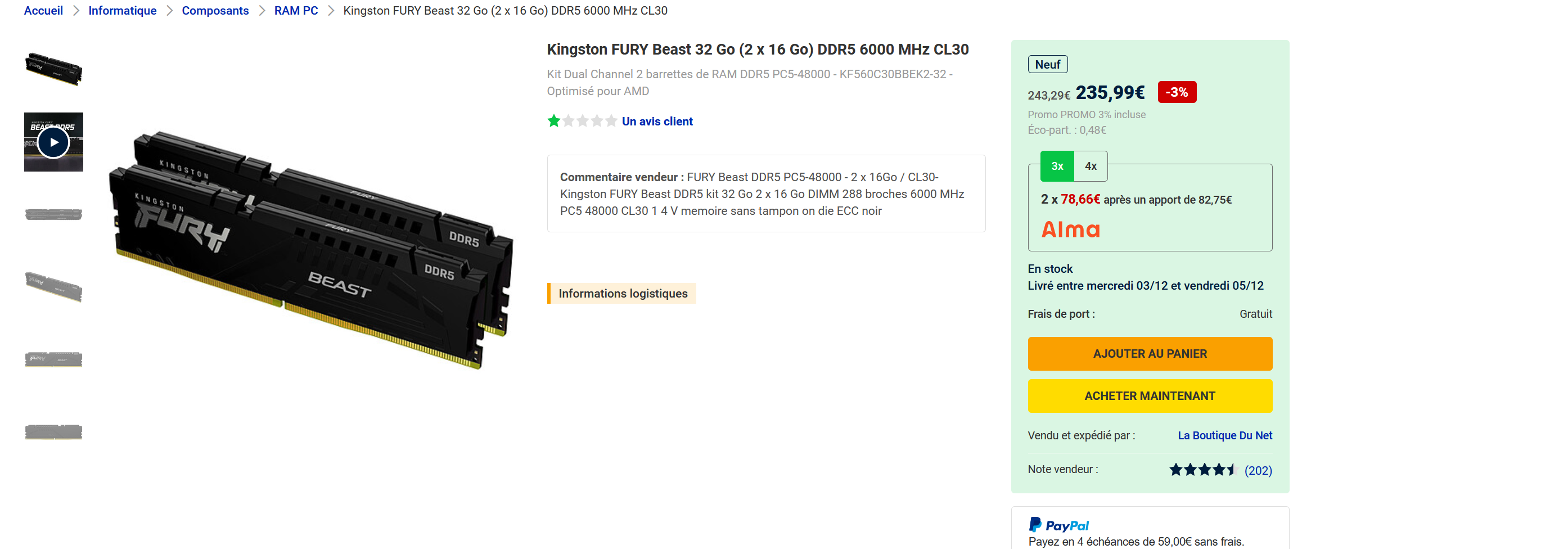 il en reste mais c'est du 236€ mais pas dans 6 mois + paypal