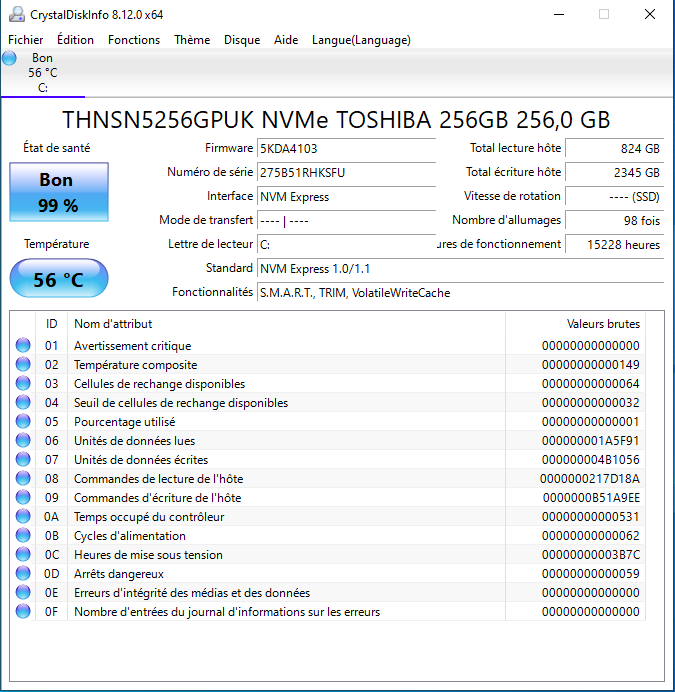 Dernière version de Windows 10 à jour et pilotes à jour.