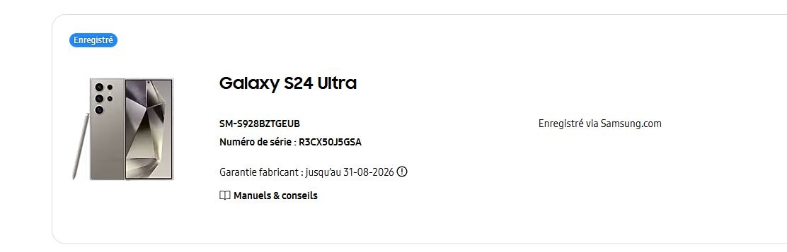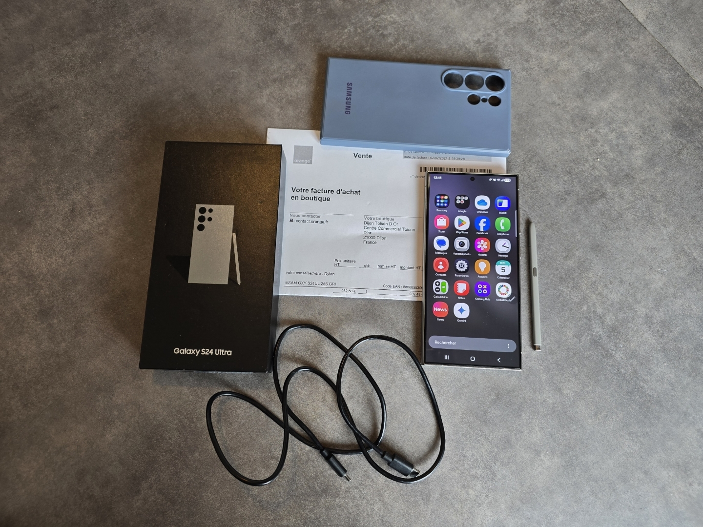 Samsung S24 Ultra 256Go Gris (SM-S928B/DS UD) 256Go-12Go, Snapdragon 8 Gen3 Débloqué tout opérateur. En bon état, tout marche parfaitement très bien sans problème. Y a un verre trempé sur l'écran et les caméras arrière. Voir les photos pour l'état esthétique. Il y a la boite d'origine, coque, pas de chargeur, juste câble usb. Facture Orange de 07/2024 fourni, encore garantie. C'est une 2ème main. Je le vends à 569€fdpin en colissimo recommande suivi avec assurance ou en main propre vers Dijon. Où échange contre console ou téléphone ou pc gamer, faire offre. + rajout de ma part ou de votre part suivant offre.