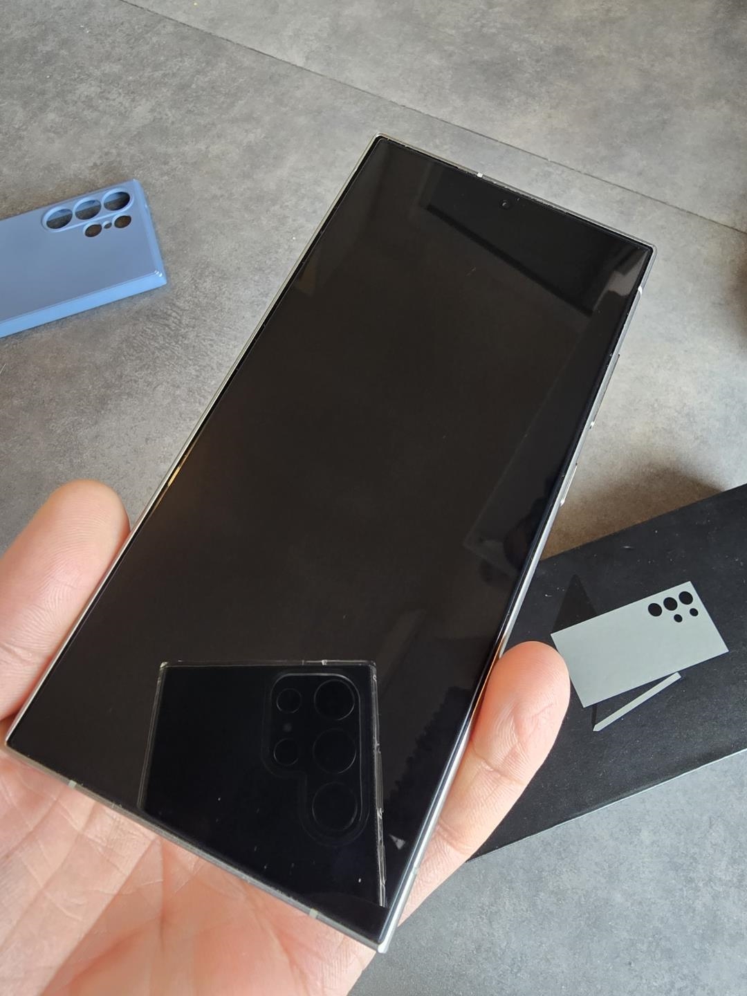 Y a un verre trempé sur l'écran et les caméras arrière.