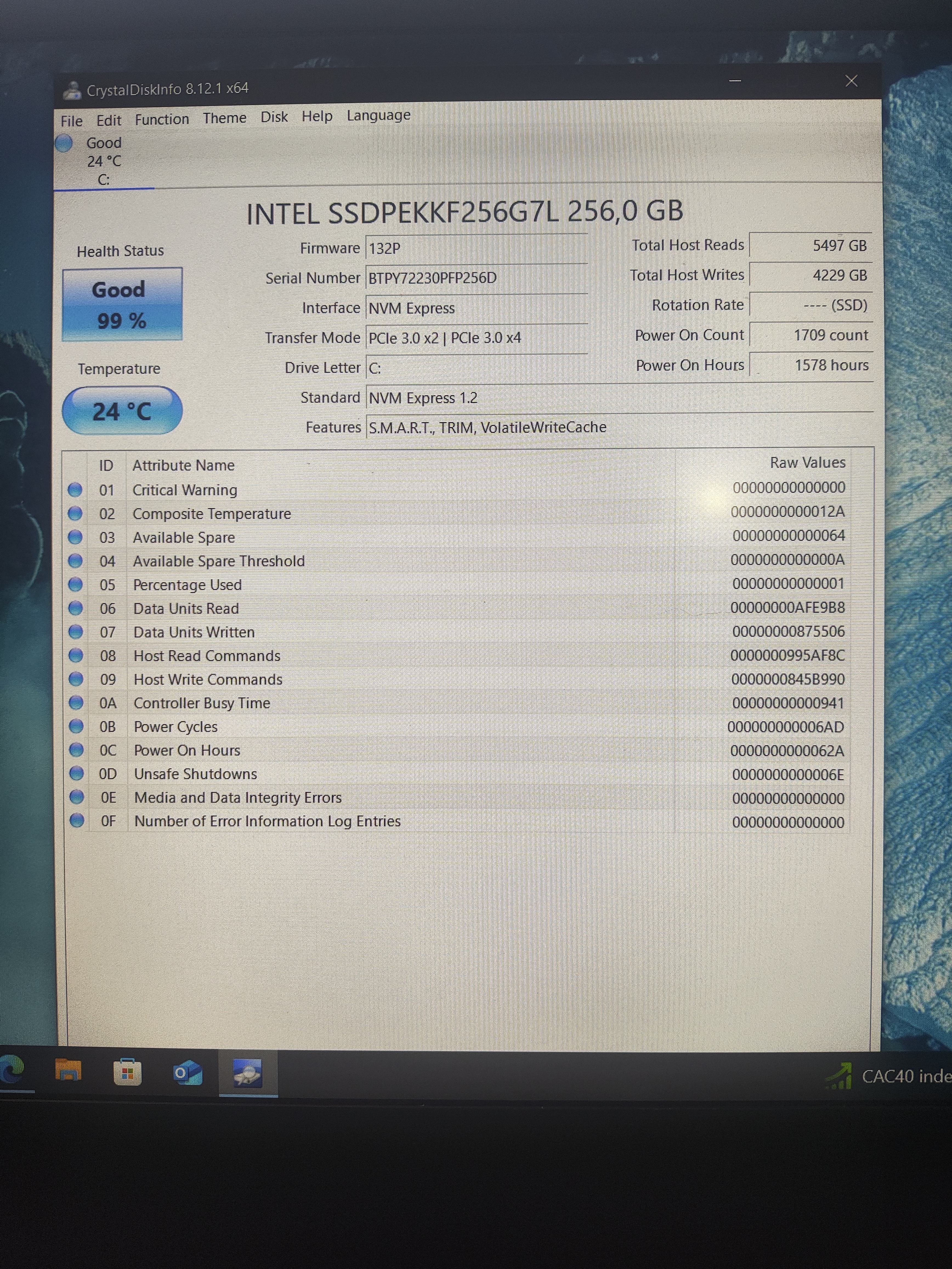 - l'état de santé du ssd avec crystal disk info