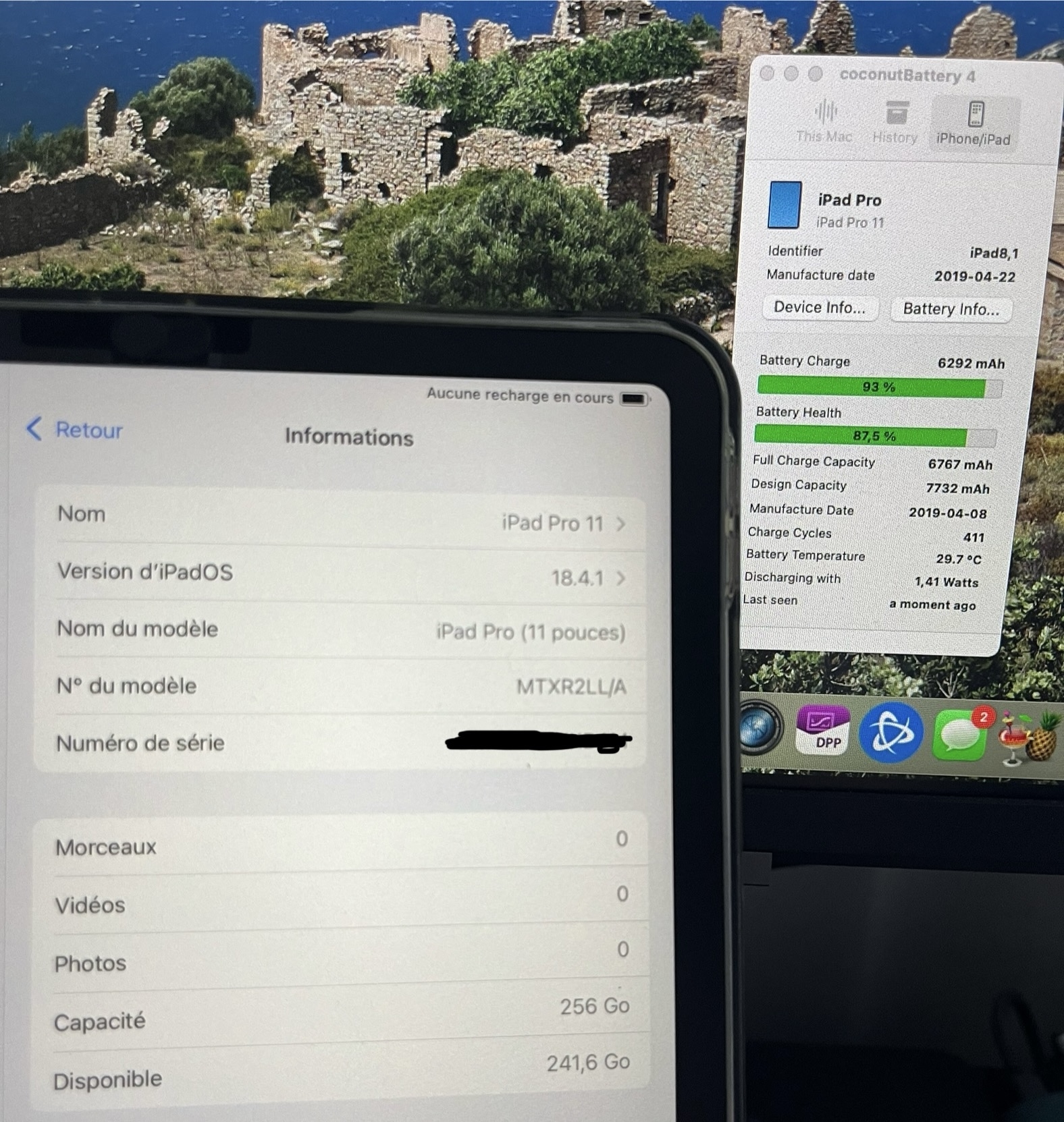 Je vends mon iPad Pro 11 pouces 1ere génération (2018) 256 Go wifi, couleur gris clair, batterie à 87,6% de capacité