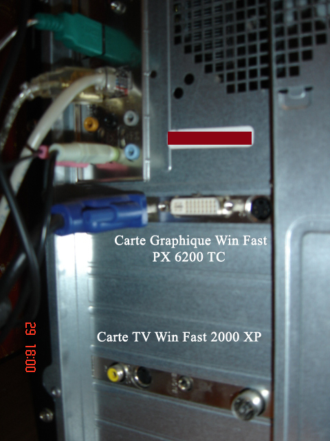 Alors afin que vous puissiez m'aider, je vous donne et vous montre exactement la configuration exacte à l'arrière de mon Pc et ce que j'ai comme carte Graphique et carte TV, pour vous mettre dans les meilleurs conditions pour pouvoir m'aider.