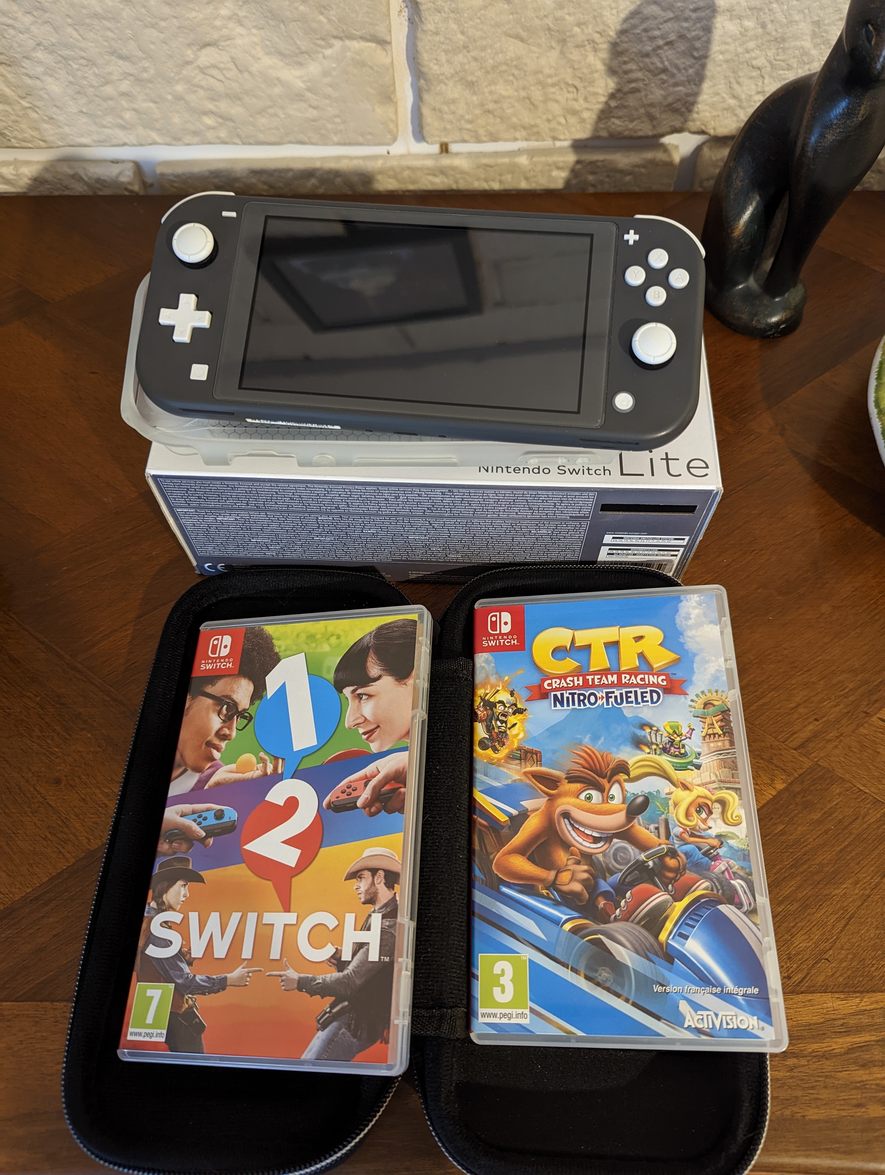 Vendue avec 2 jeux, 1-2 switch et Crash team racing.