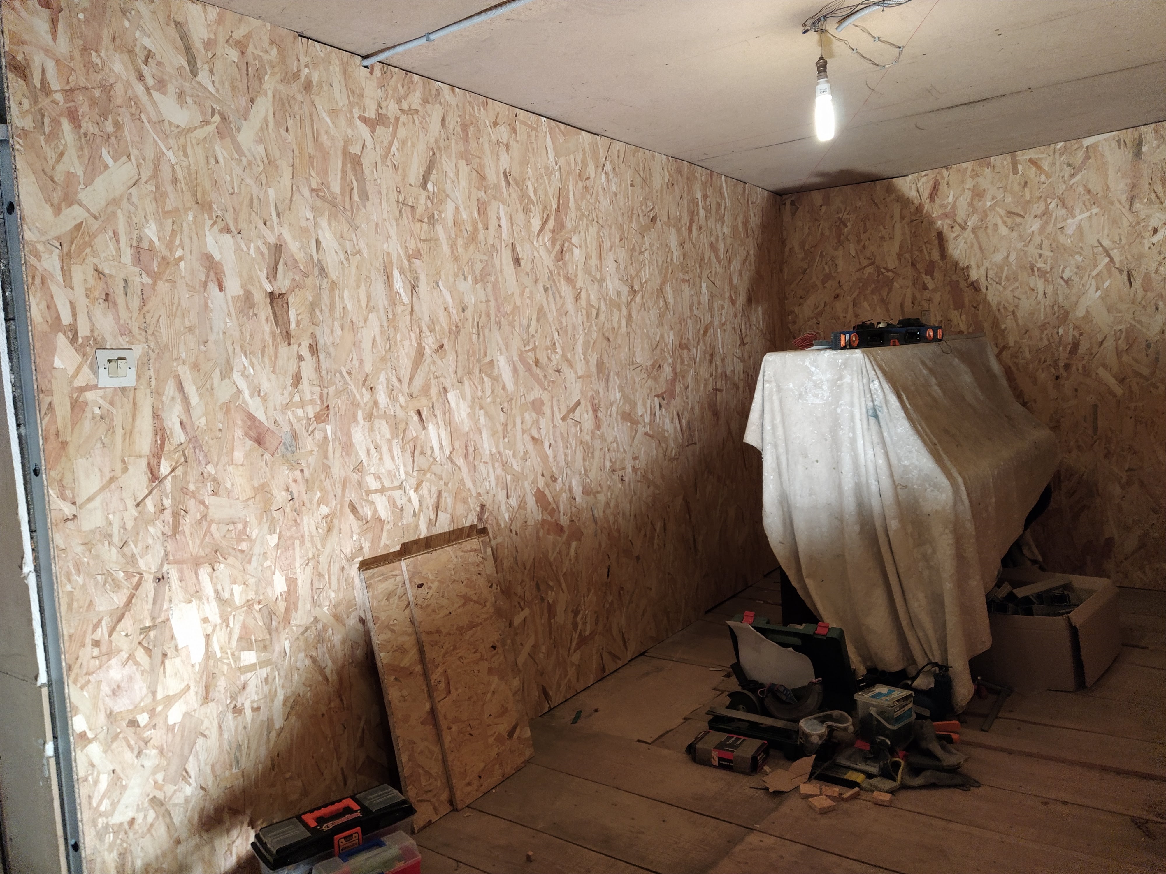 Trop cool cette pièce !!! Tu vas laisser brut l'osb ? j'aurai aimé m'en faire une aussi mais j'ai pas prévu dans ma construction.