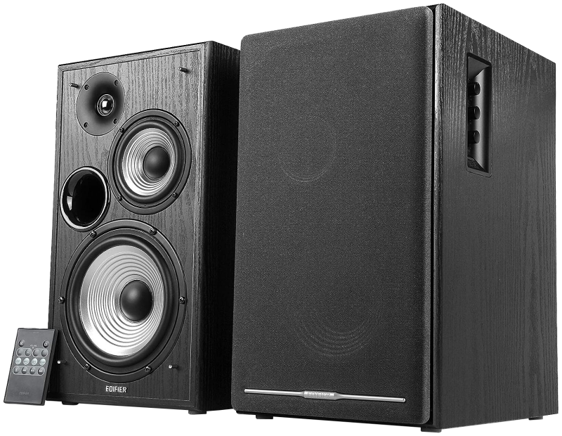 Edifier R2750DB, alors là aussi on est en face d'un modèle qui coche vraiment toutes les cases. Mais pourquoi mettre 40 € de plus ? Elles sont un petit peu plus chères d'une part parce que la promo black friday est moins intéressante mais aussi parce qu'on change de gabarit et de type d'enceintes, on élève la qualité des prestations. Il s'agit toujours d'enceintes au format bibliothèques, par contre il s'agit d'enceintes 3 voies, et pas 2 seulement comme sur le précédent modèle. Concrètement ça veut dire qu'il y a un haut-parleur de 17 cm dédié aux graves, ainsi qu'un haut parleur de 11 cm dédié aux médiums, et un tweeter dédié aux aigus. On note déjà que le haut-parleur de grave a un plus grand diamètre (17 cm) ce qui renforce ses aptitudes dans le rendu du grave. Et c'est la présence d'un haut-parleur supplémentaire dédié aux médiums qui fait qu'il s'agit d'une enceinte 3 voies, cela augmente la qualité de restitution globale quand chaque haut-parleur possède sa plage de fréquences dédiées avec un diamètre bien particulier. Cette séparation en 3 voies est un atout, c'est de cette manière souvent qu'on obtient un meilleur équilibre du son, trouver cela dans ce segment de gamme là est assez rare, ce modèle est vraiment un petit bijou. Cette paire a tout ce qu'il faut exactement comme l'autre modèle. Par contre son design est peut-être légèrement moins moderne avec ses coins carrés, mais en contrepartie les performances sont meilleures. Disons qu'avec un haut-parleur de grave de 17 cm de diamètre il est un peu mieux supportable de se passer d'un caisson de basses. Mais le caisson de basses dans tous les cas reste un indispensable si on est amoureux des sensations fortes en homecinema. C'est un upgrade futur à envisager.